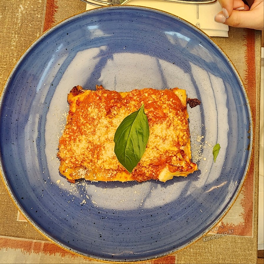 라자냐입니다. 그릇이 커서 작아 보이는데 생각보다 양이 많습니다. 라자냐면 사이에 치즈와 미트 토마토소스가 많이 들어있는데 너무 맛있었어요. 양도 많고 진짜 너무 맛있었어요.