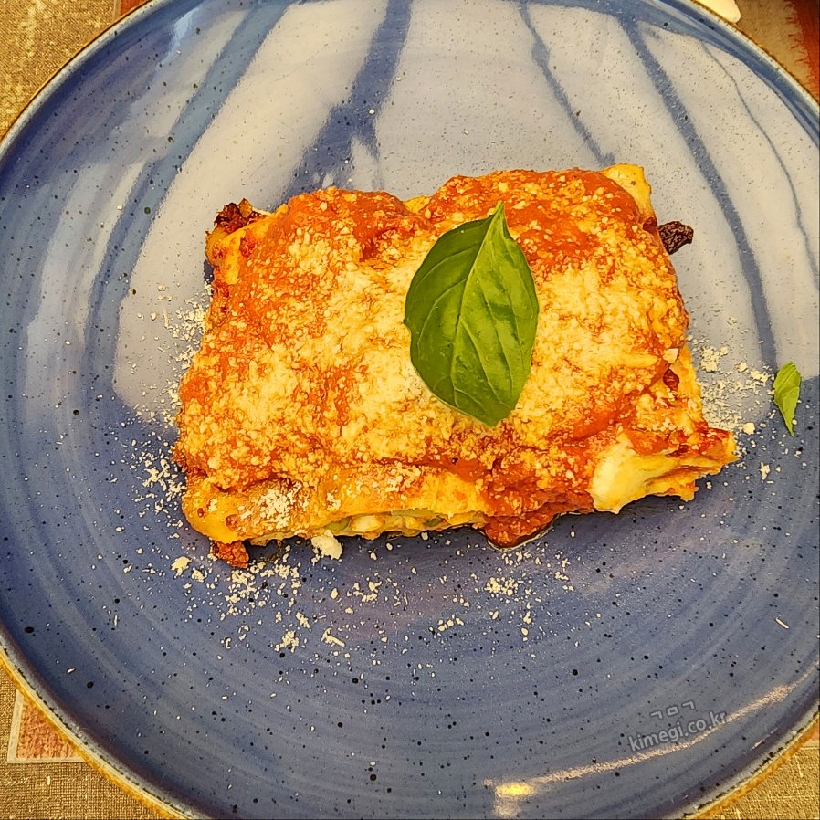 라자냐입니다. 그릇이 커서 작아 보이는데 생각보다 양이 많습니다. 라자냐면 사이에 치즈와 미트 토마토소스가 많이 들어있는데 너무 맛있었어요. 양도 많고 진짜 너무 맛있었어요.