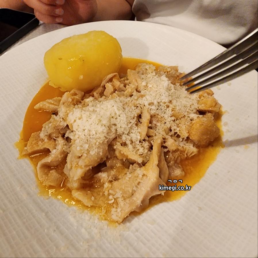 와이프가 이 가게를 꼭 오고 싶어했던 이유가 바로 곱창요리를 먹기 위해서 였어요. 송아지 곱창을 삶아서 감자와 함께 먹는 요리입니다.