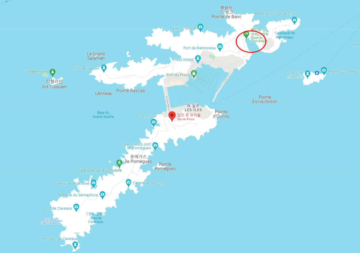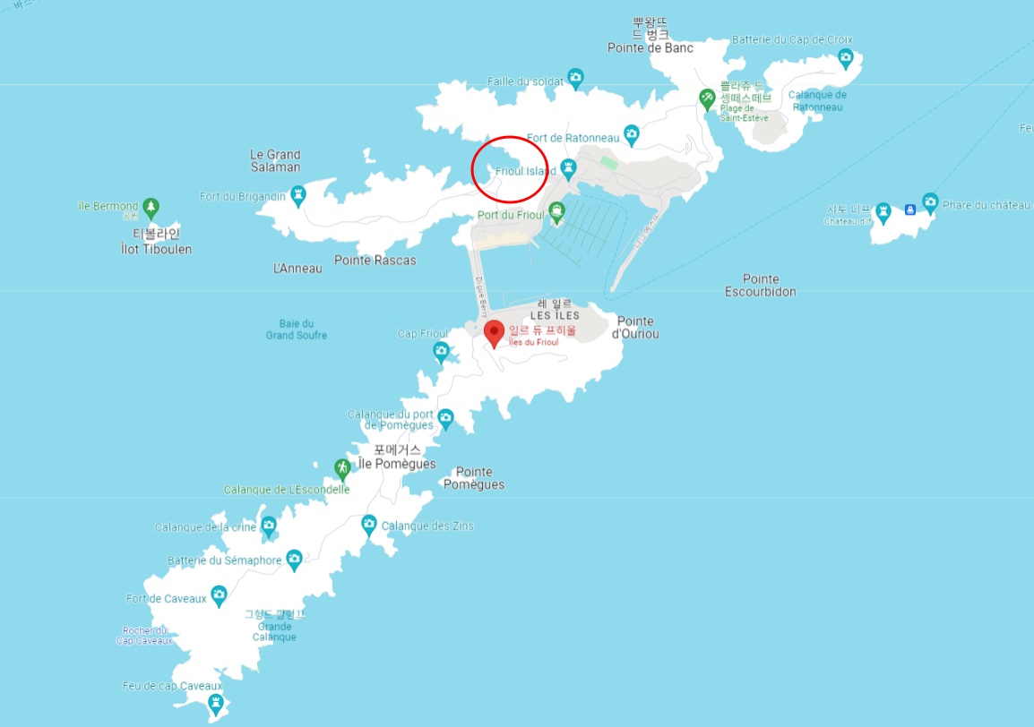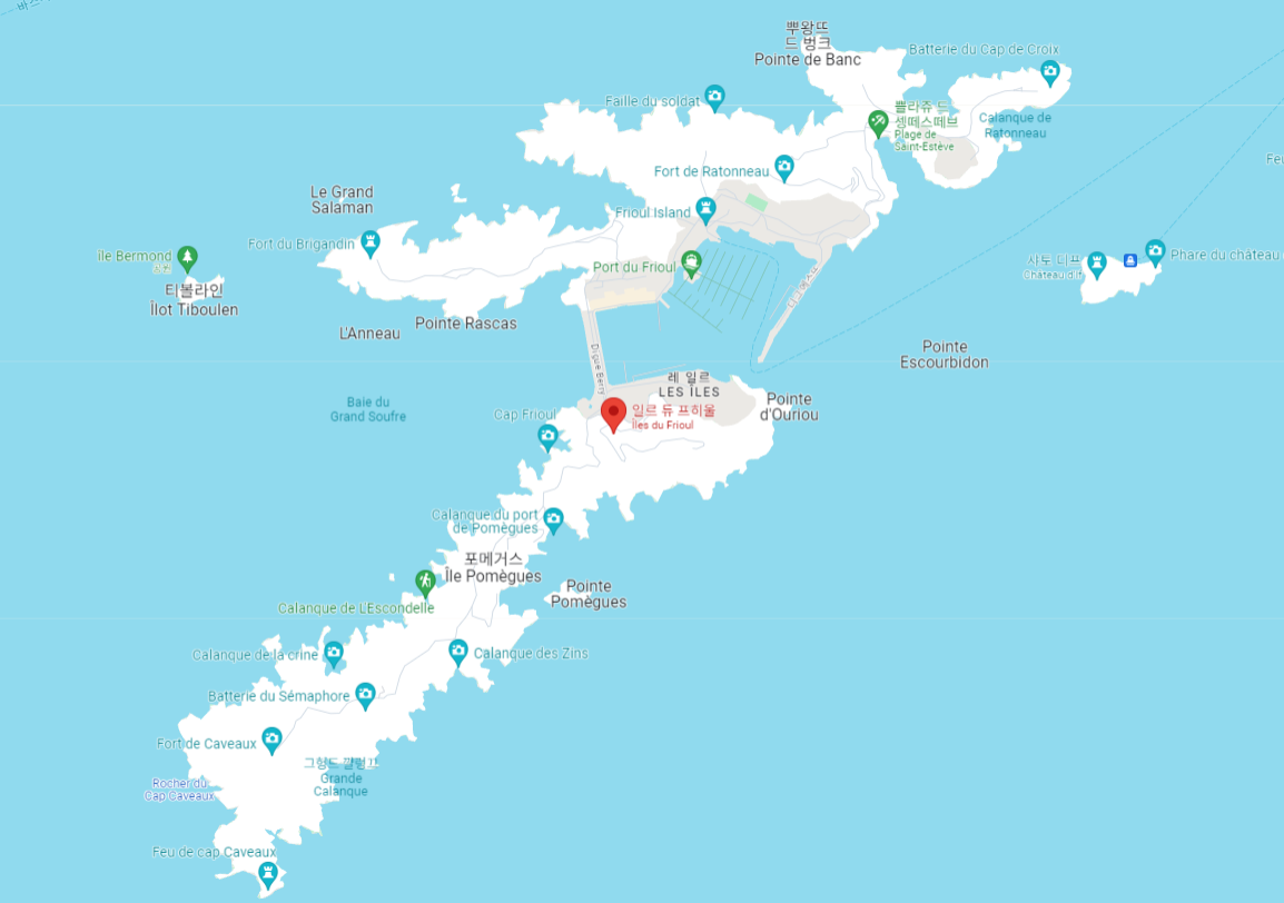 이렇게 치안이 안 좋더라도 마르세유를 가야 하는 이유는 바로 프리울섬 때문입니다. 프리울 섬은 정말 특이하게 생긴 섬인데 섬에서 해수욕도 하고 트레킹도 할 수 있는 섬이에요.