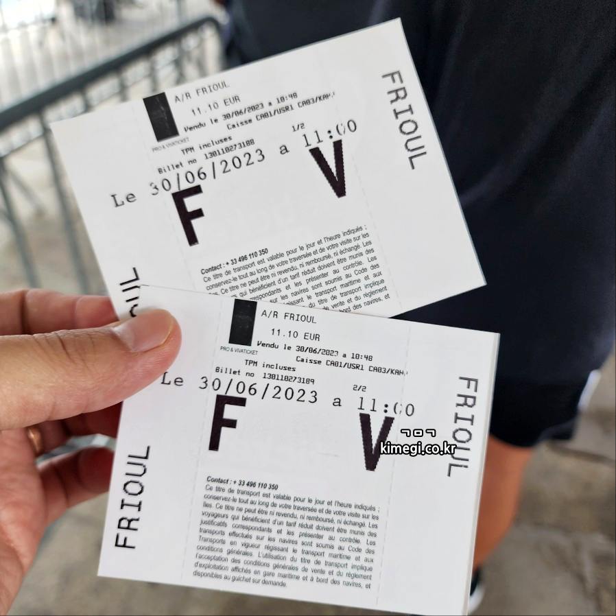 프리울섬을 가는 배표는 1인당 11.1유로로 현장에서 바로 결제했어요.