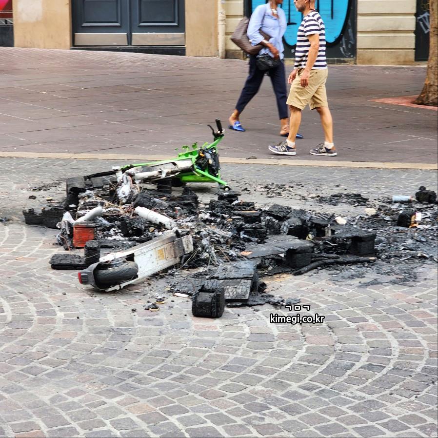 전동킥보드가 불에 타있고 정말 무서운 동네더라고요. 저는 유리창 깨진 것은 일괄 교체를 하려고 해 놓은 거고 불탄 킥보드는 술 행위인 줄 알았어요.