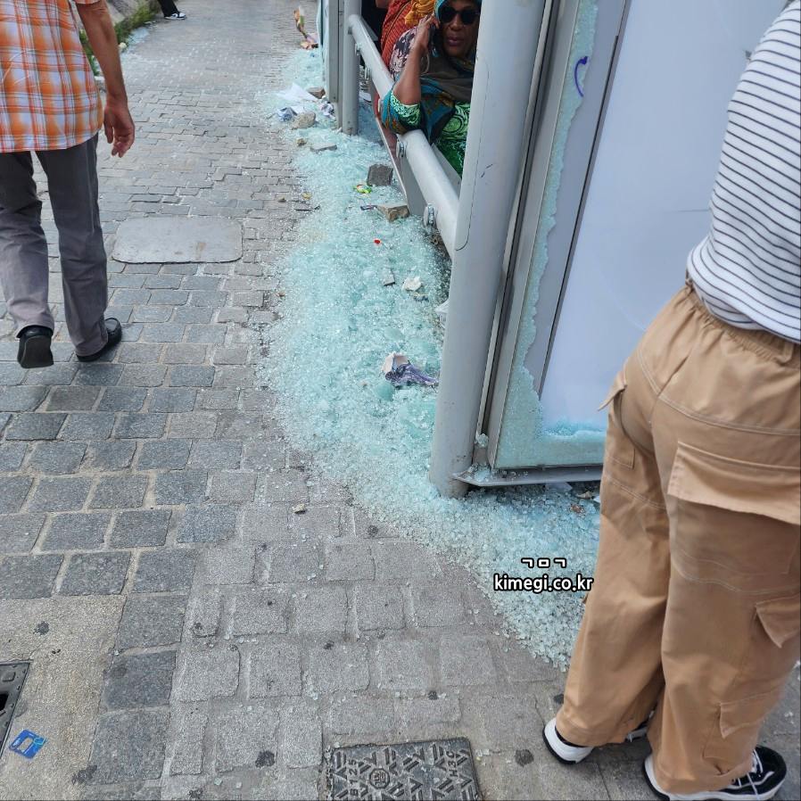 마르세유에 도착해서 처음 본 관경들이에요. 모든 버스 정류장 유리가 깨져서 이렇게 널브러져 있습니다. 그리고 뭔가 사람들도 유럽사람이라기보다는 난민이 많아 보였어요.