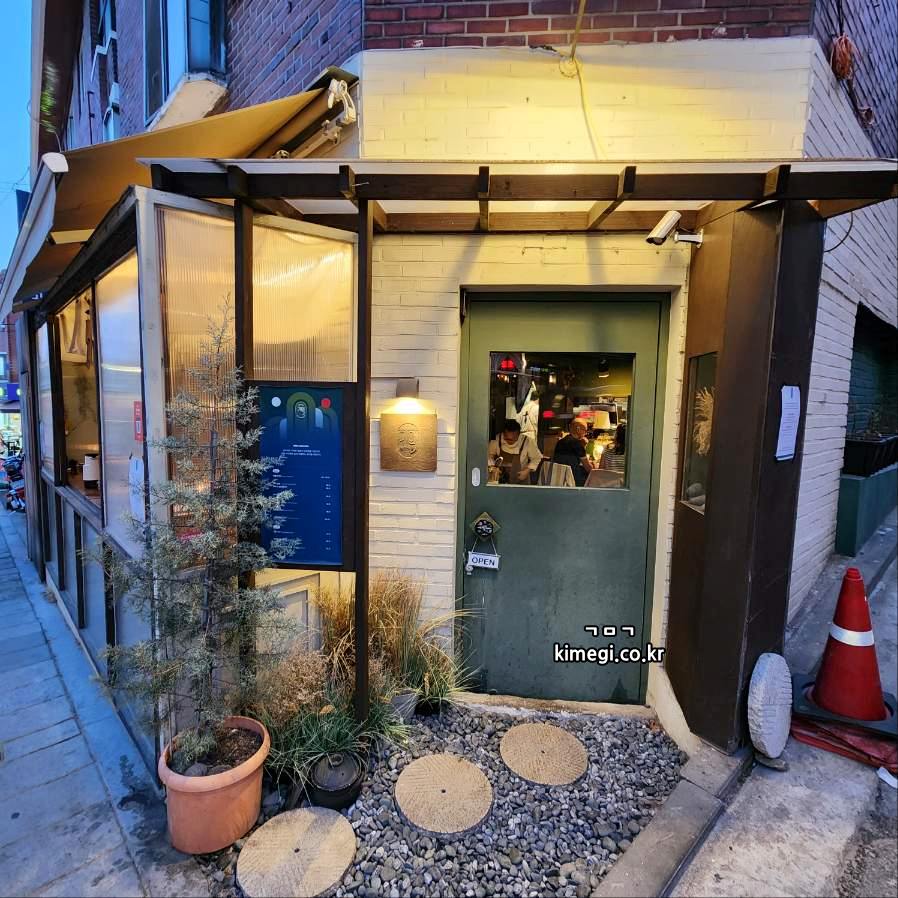 심야식당 기억도 해방촌의 주변 느낌처럼 벽돌건물 1층에 있었는데 정말 힙한느낌이었어요. 4인석은 뒤쪽에 있는 건물로 다시 안내해주더라고요.