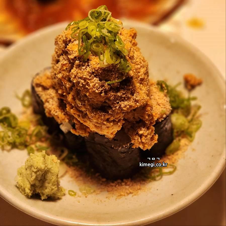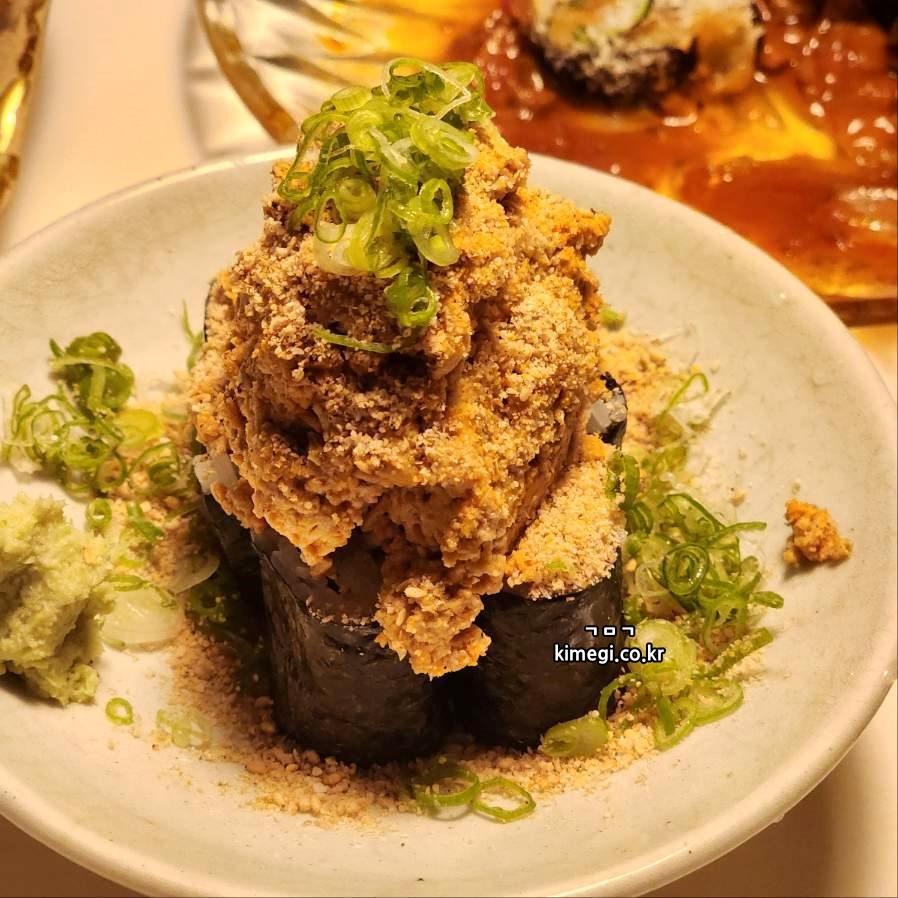 오랜시간 숙성한 아귀간을 김밥에 올려져서 먹는 요리인데 아귀간이 진짜 너무 맛있습니다. 저는 고등어봉초밥보다 안키모 호소마끼가 훨씬 맛있었습니다. 못먹고 갔다면 정말 후회할 요리이니 꼭 주문하세요. 21,000원이 전혀 아깝지 않는 요리입니다.