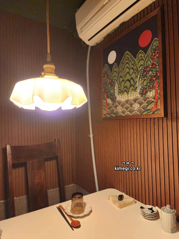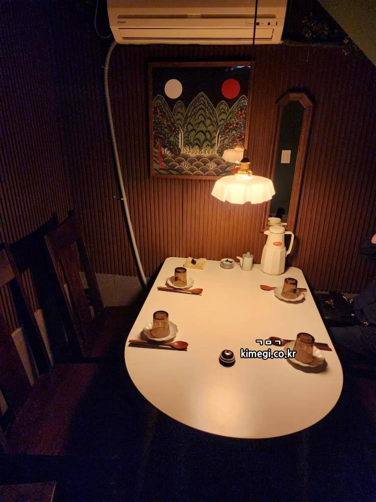 심야식당 기억의 4인석입니다. 좌석이나 공간은 아담하였지만 깔끔하고 멋진 소품들, 조명이 너무 마음에 들었습니다.