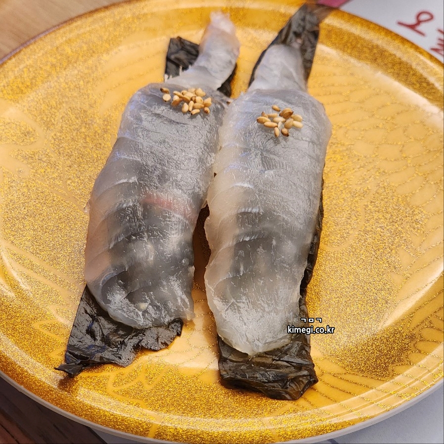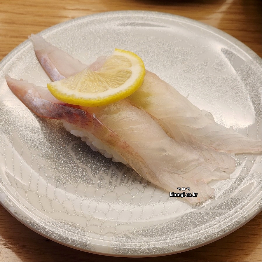 주문한 초밥이 올때까지 저희 앞에 지나가는 초밥은 다 싹쓸이 해줍니다. 일단 광어 종류 흰살 생선 종류로 많이 있어서 다 집어서 먹었어요.