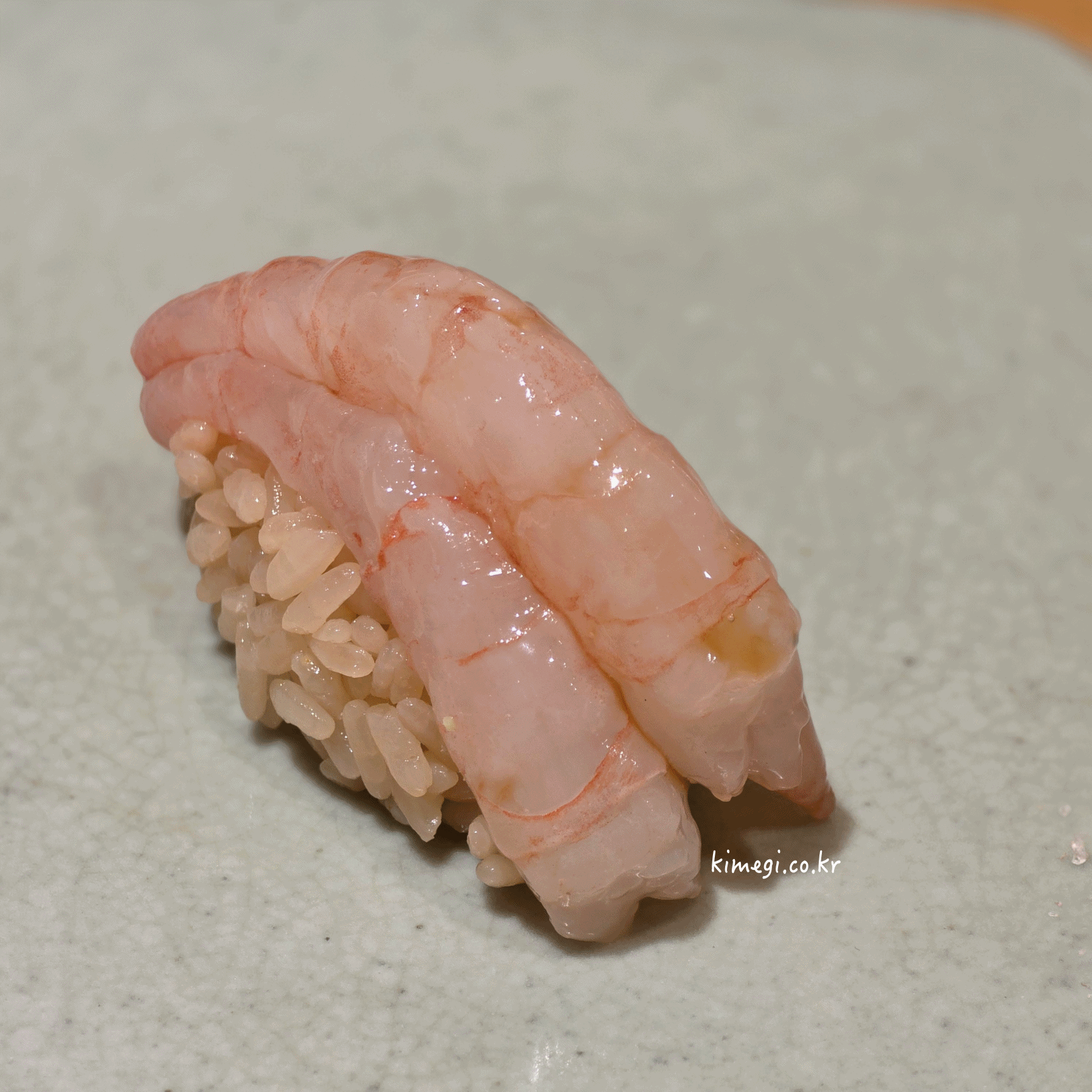 다음 메뉴는 단새우 초밥이 나왔어요.