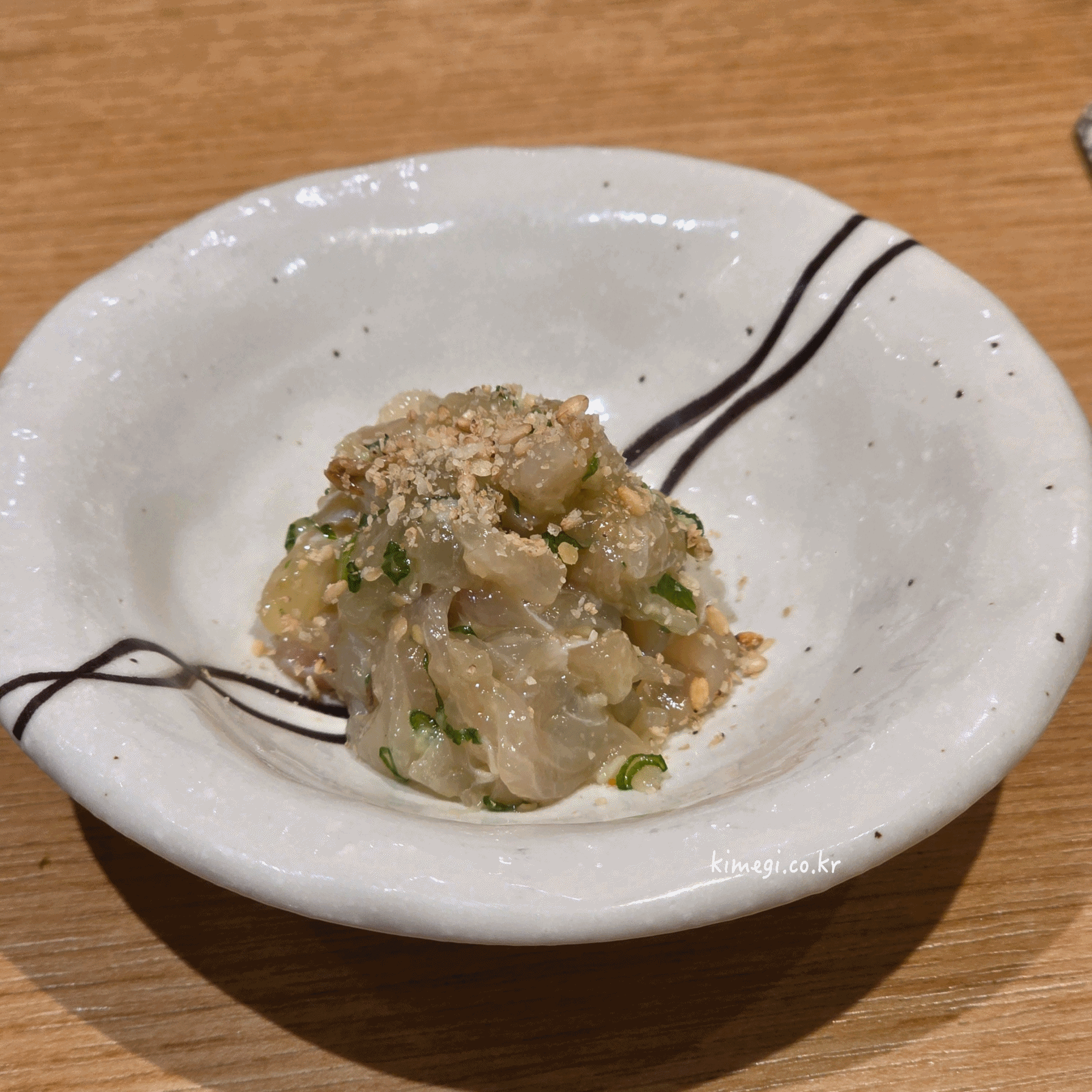 처음에 사시미로 먹었던 잿방어 위에 마늘 소스를 올려