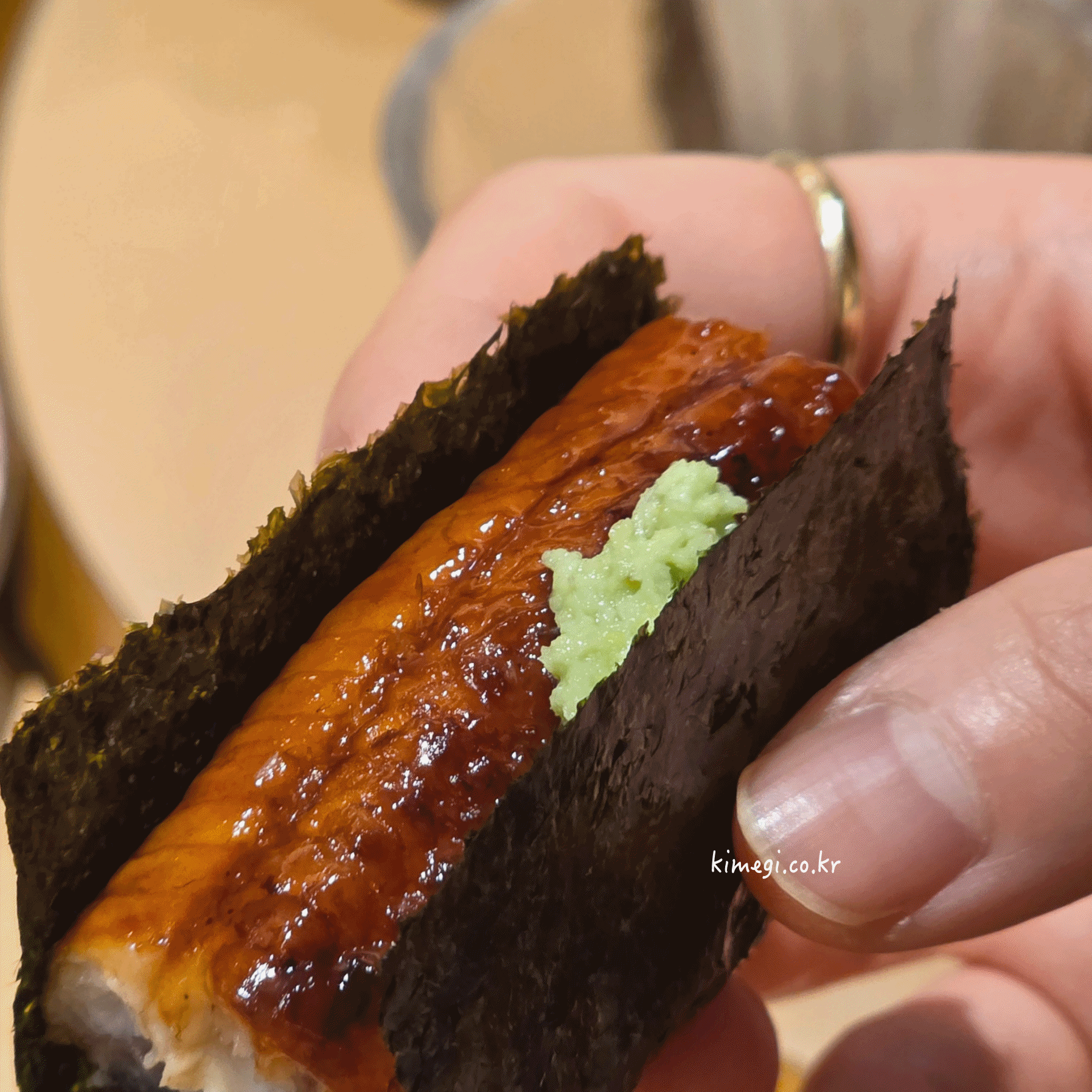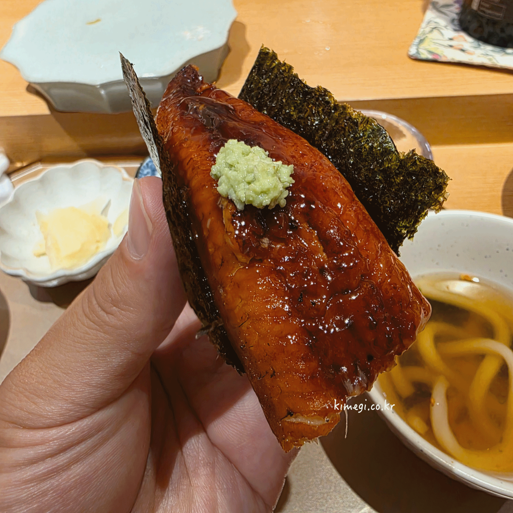 다음은 맛있게 구워진 장어로 만든 장어초밥입니다.