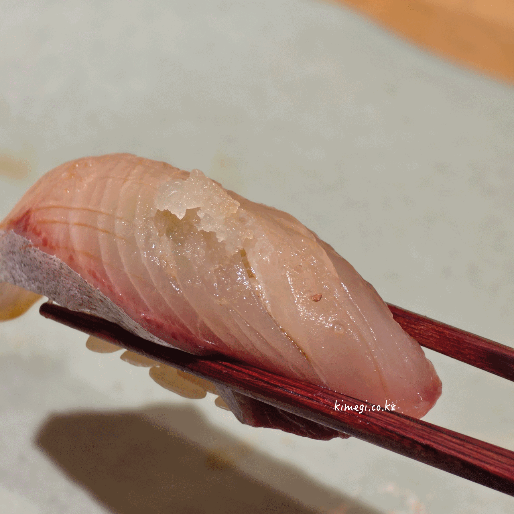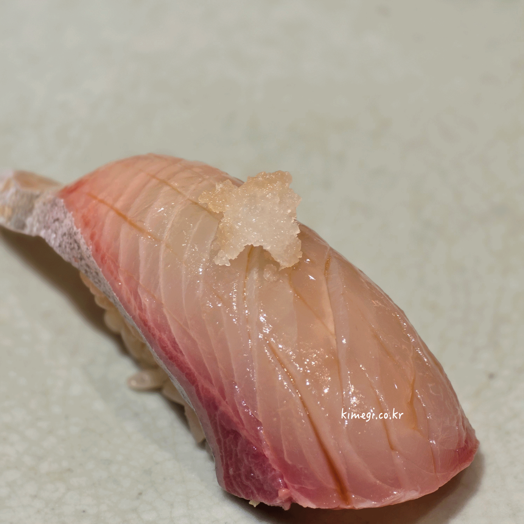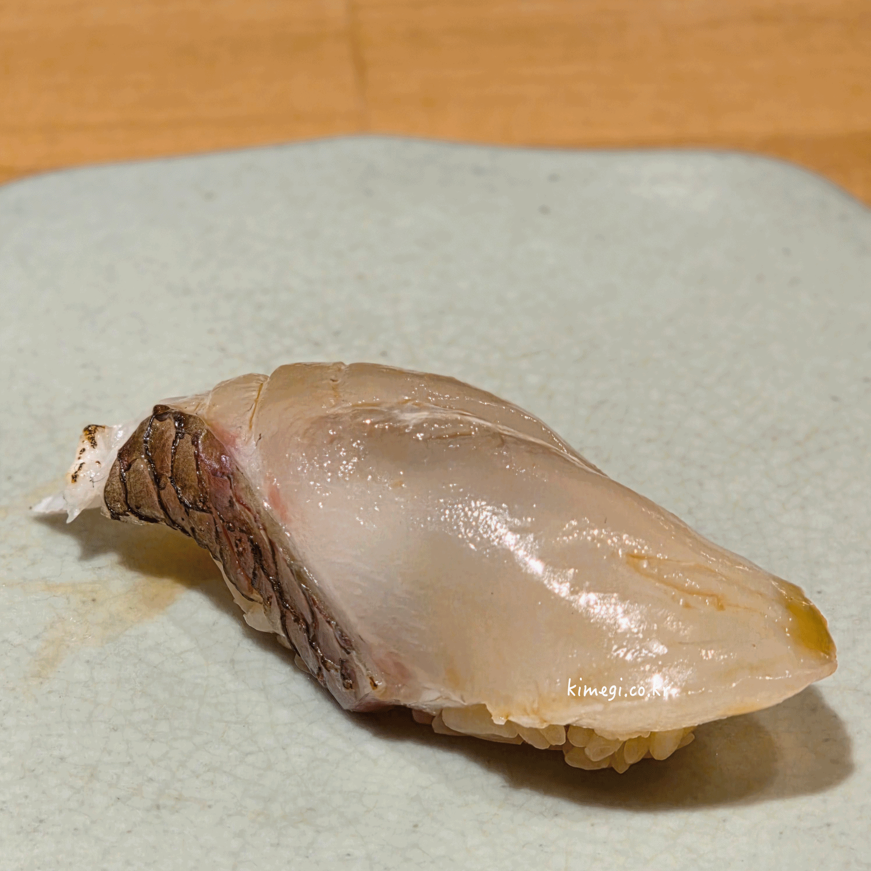 첫 초밥은 2일 숙성한 대광어 초밥입니다.