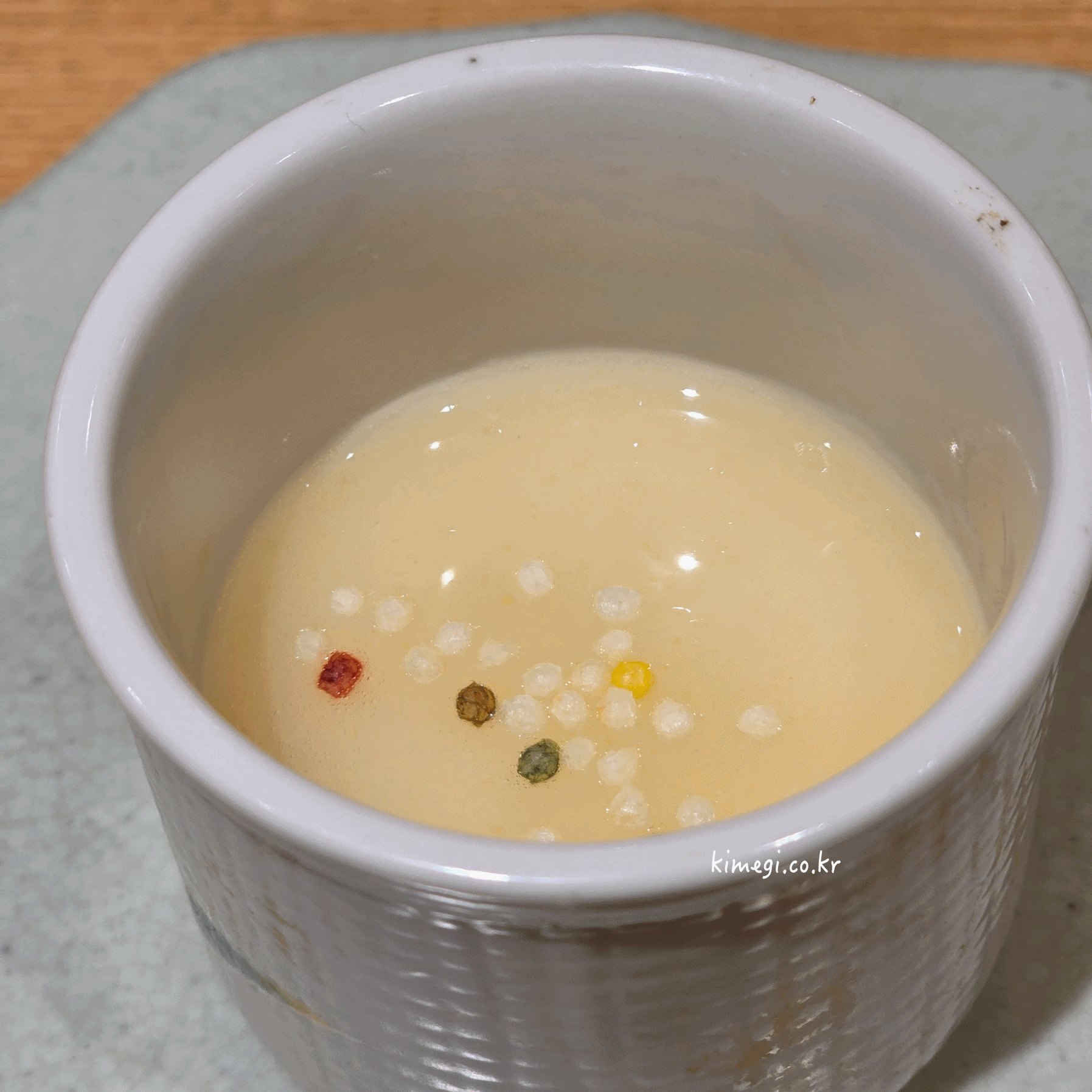 해장국을 컵에 따라 주셨는데