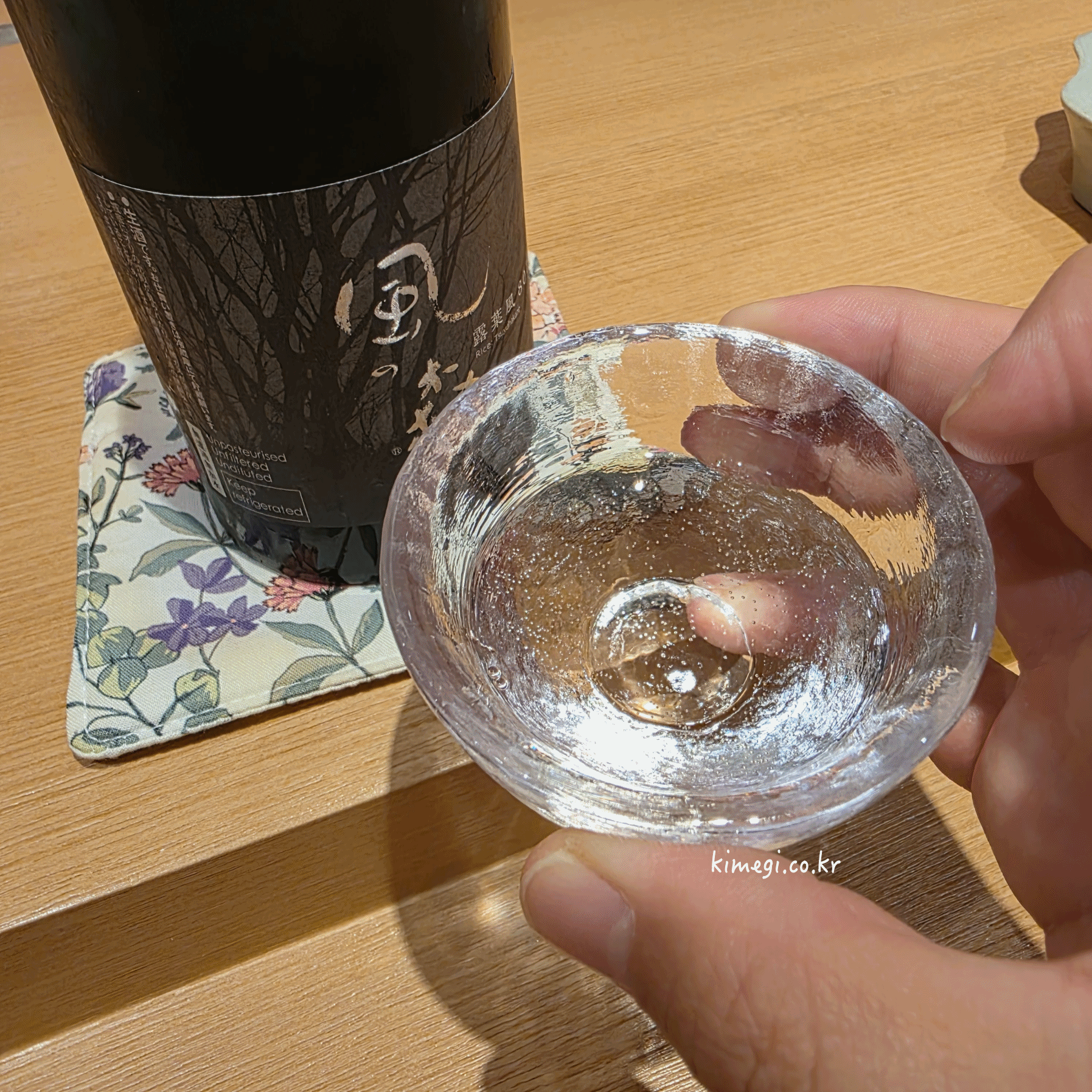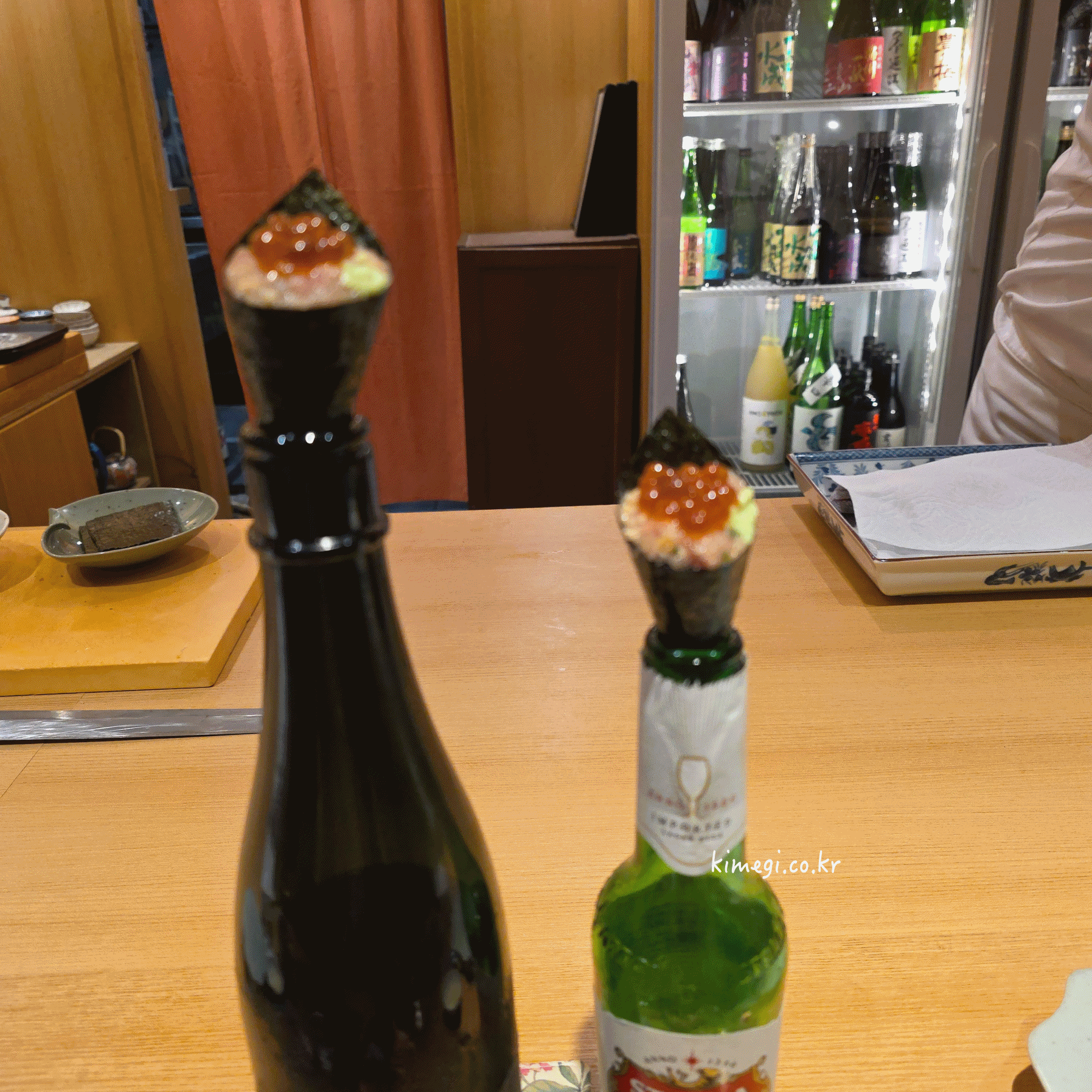 셰프님에게 추천을 받아 사케 한병을 주문했어요.