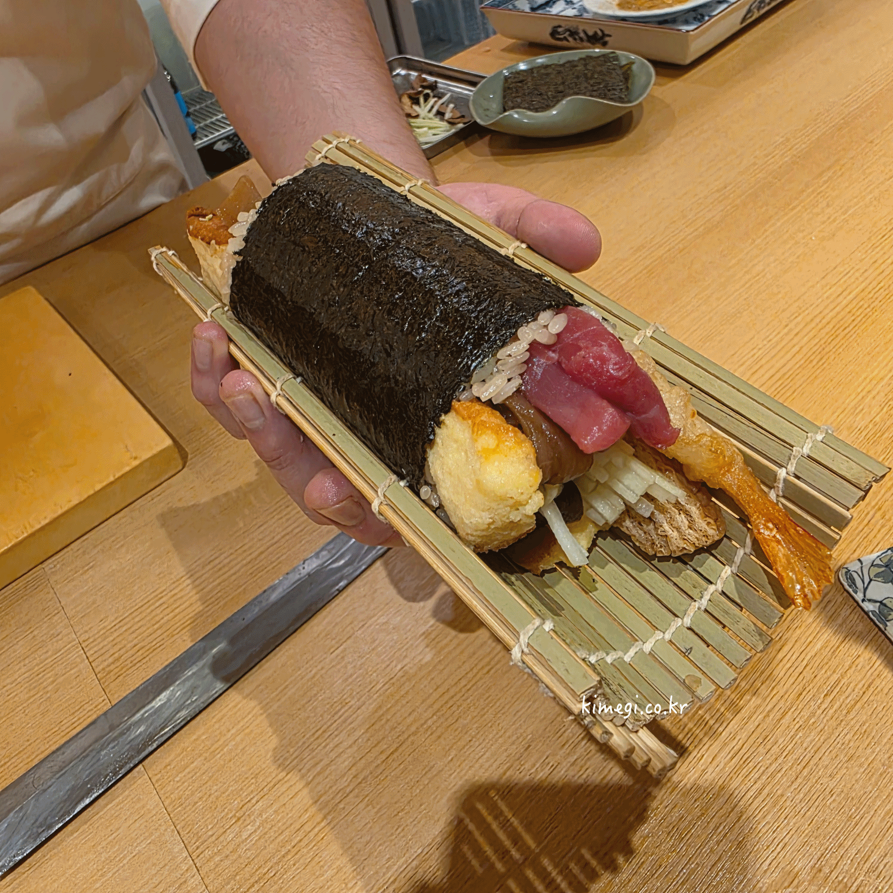 후토마끼 위에 남은 재료들을 더 얹어주시고