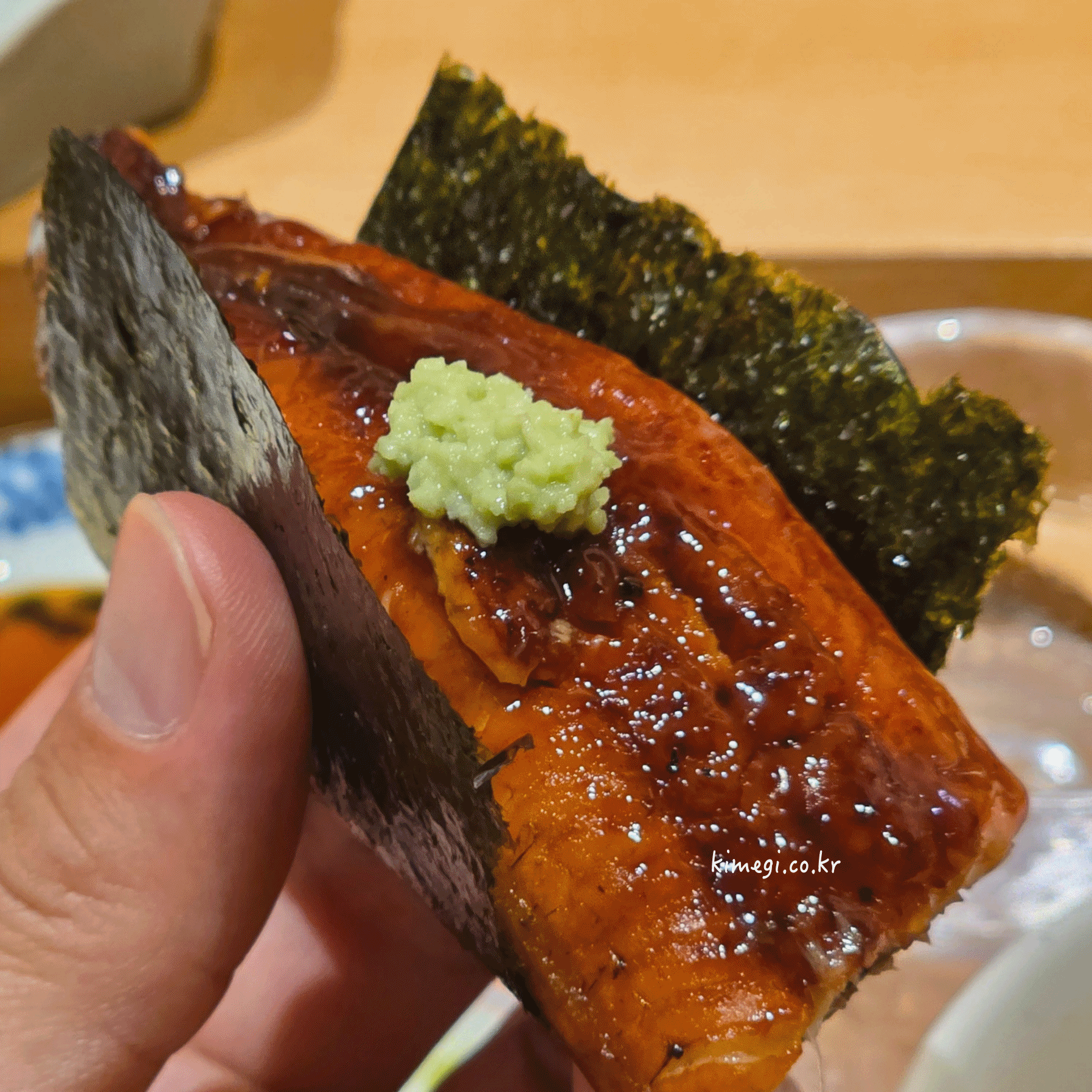 다음은 맛있게 구워진 장어로 만든 장어초밥입니다.