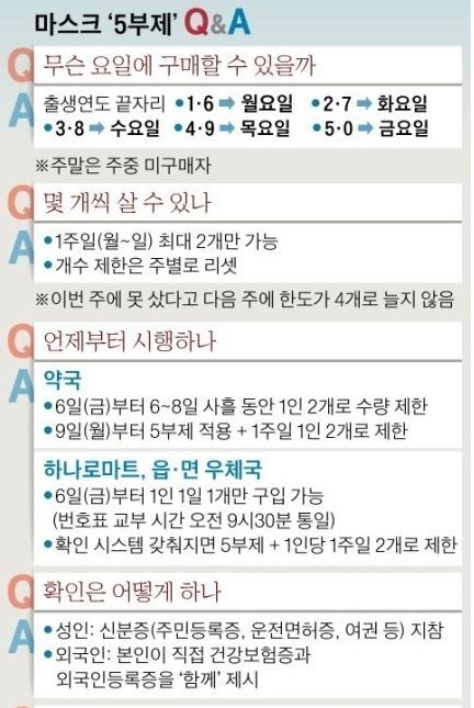 마스크를 약국에서 5부제로 판매한다고 합니다.