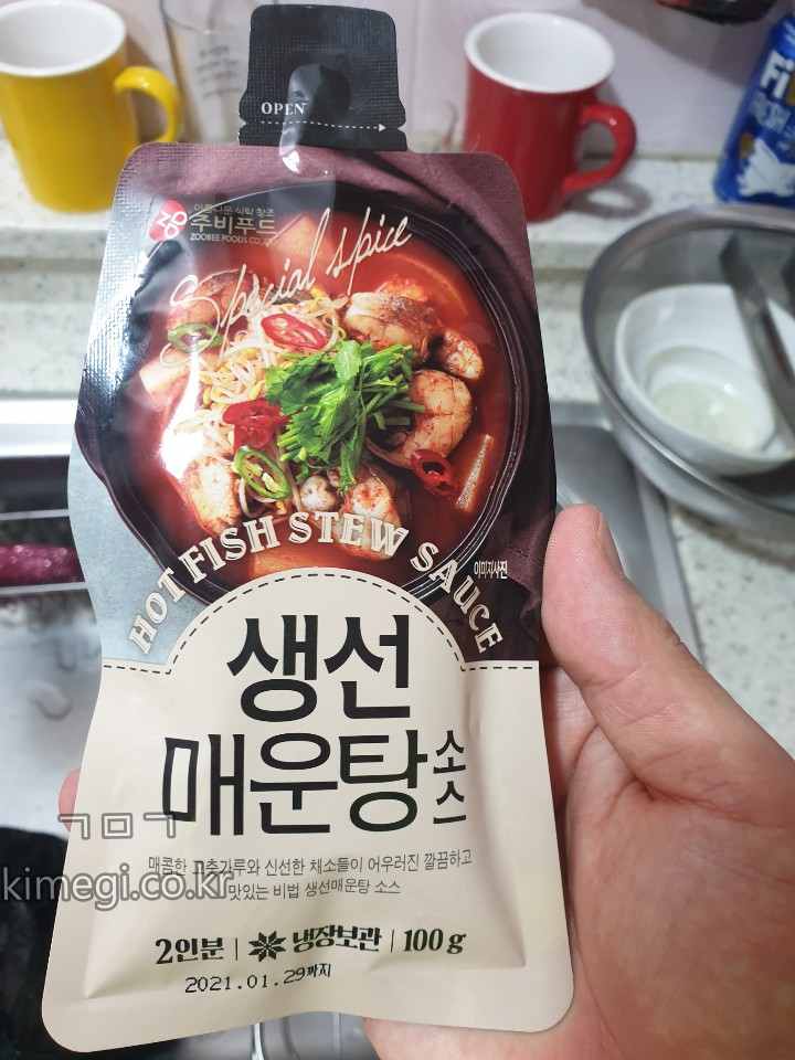 매운탕 소스와 손질된 야채를 찾아냈습니다.