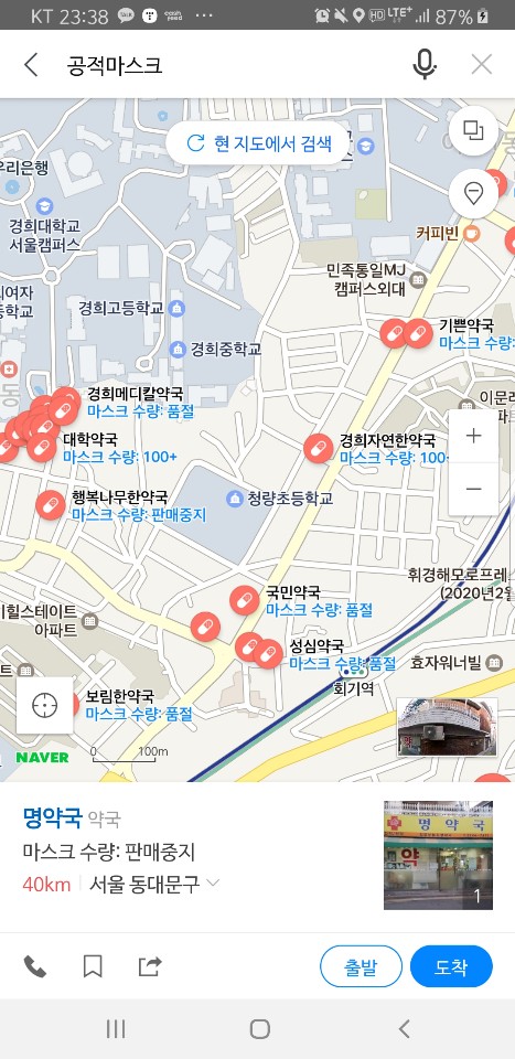 네이버 지도 이용하여 공적 마스크 주말 현황