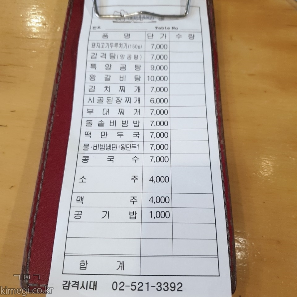 감격시대 고기 메뉴판이에요.