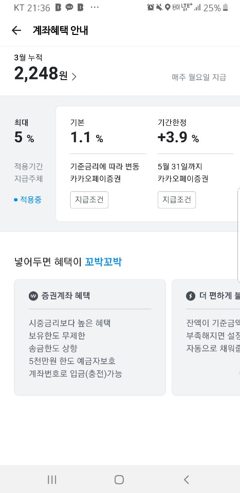 1. 카카오 페이 증권 페이 머니 5%