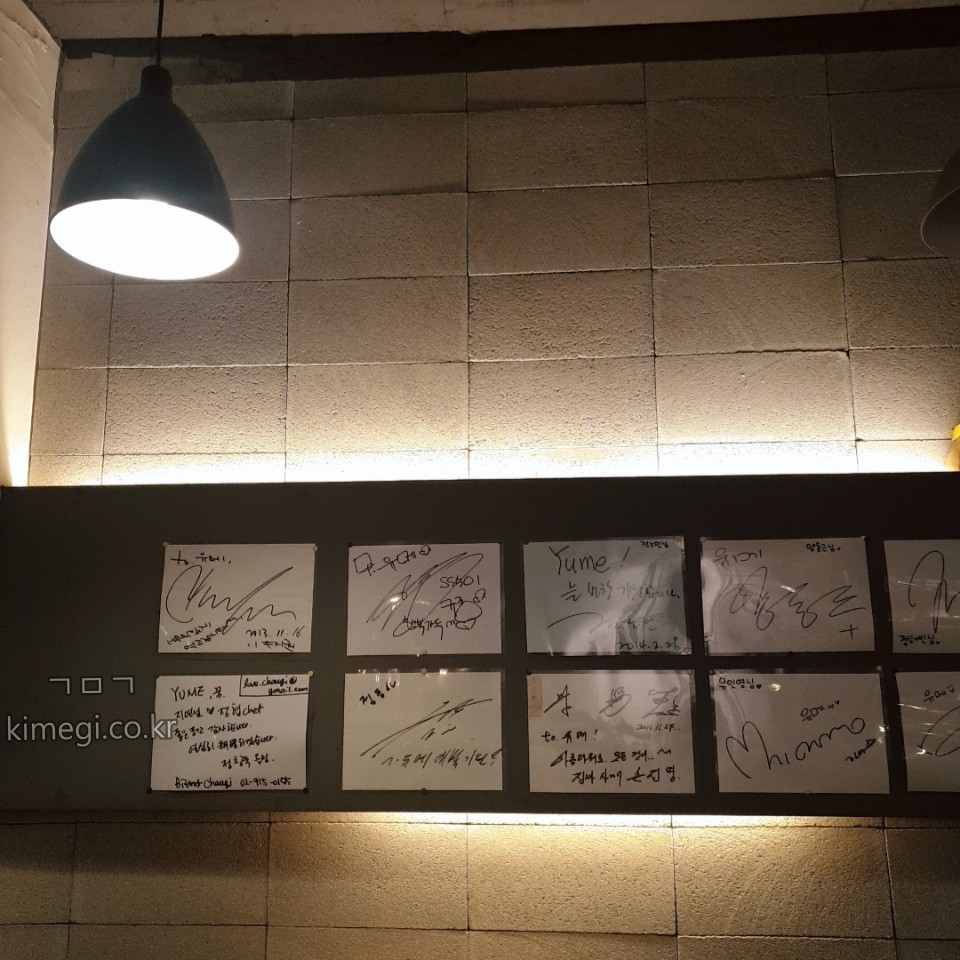 벽에 싸인이 붙어 있더라고요.