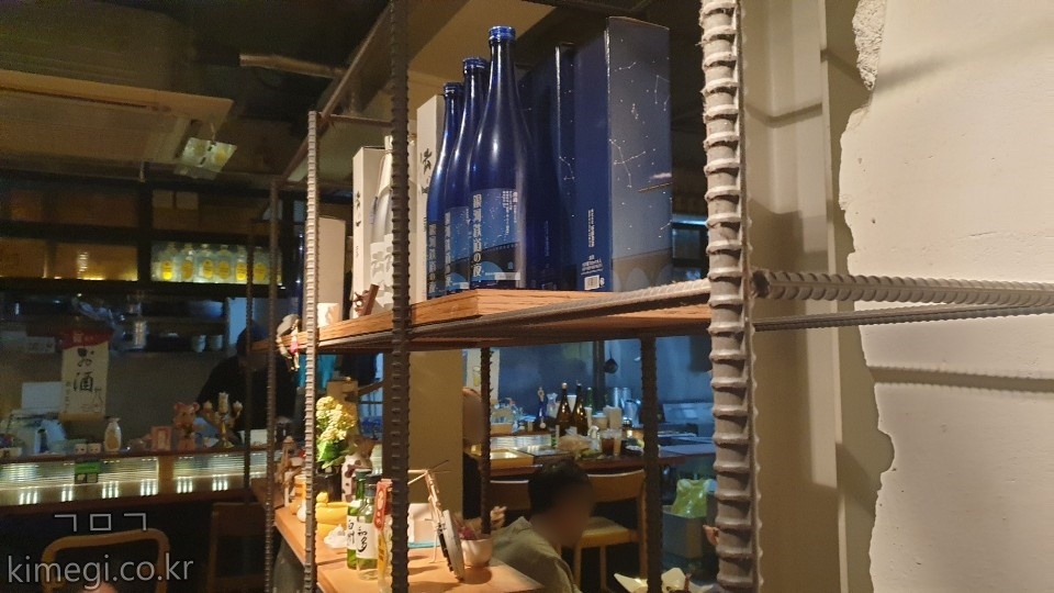 술병으로 한 전형적인 이자카야 인테리어였어요.