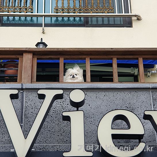 입구에 들어서면 2층에서 자기가 사자인 줄 아는 포메라니안이 반겨줍니다.