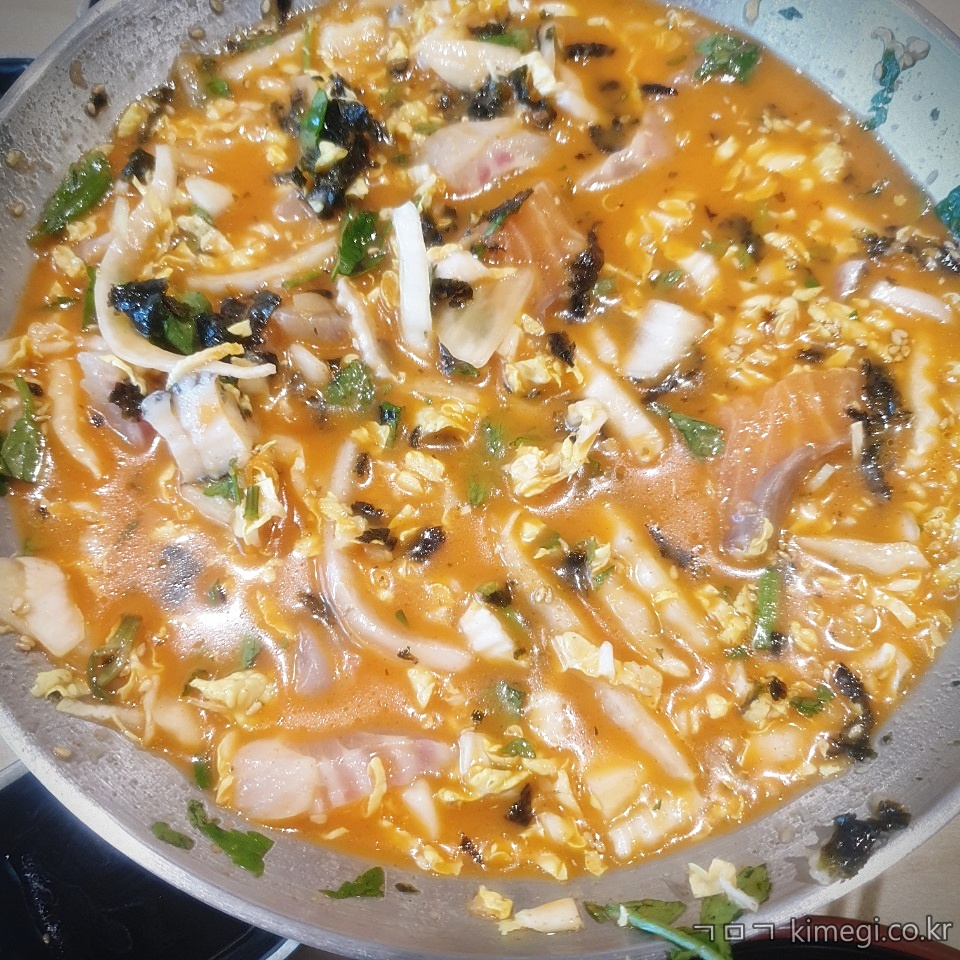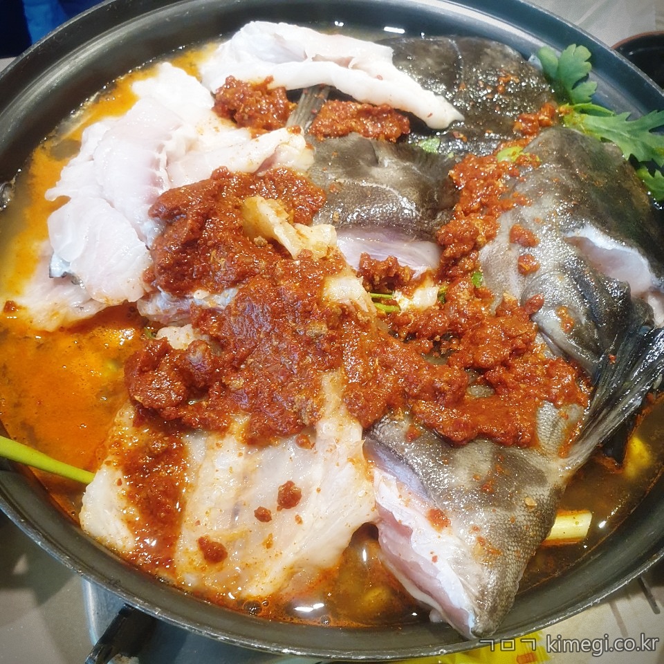 안에 야채들이 숨어 있지만 매운탕거리가 많아서 보이지 않습니다.