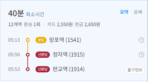 같은 분당선 라인으로 수원 9분, 선릉역 1시간 2분 소요됩니다.