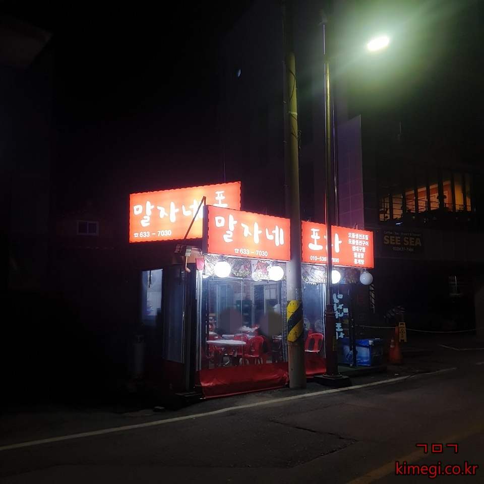 동명항 근처에 횟집들이 10시면 다 문을 닫아서 저희는 포차 거리에 있는 말자네 포차를 방문했습니다.