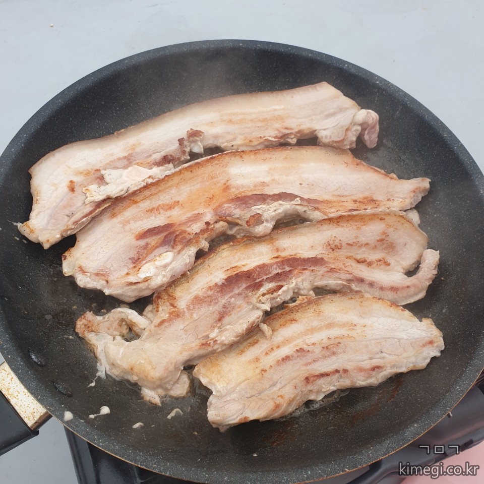 진로마트에서 구매한 국산 생고기 삼겹살을 구워줍니다.