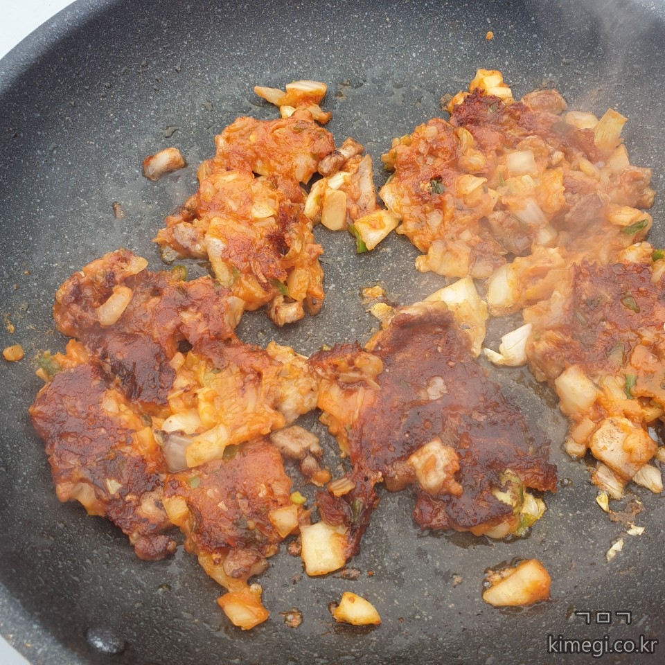 김치전을 처음 해봐서 잘 안되긴 했어요.