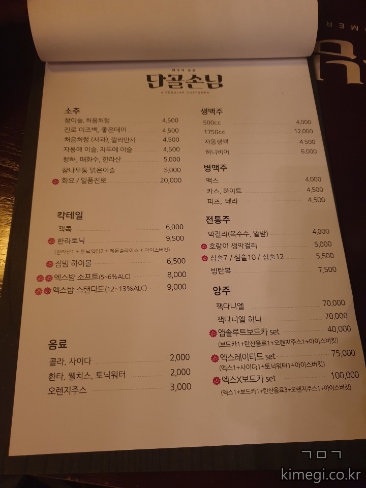 단골손님은 한국식 술집으로 메뉴가 한식입니다.
