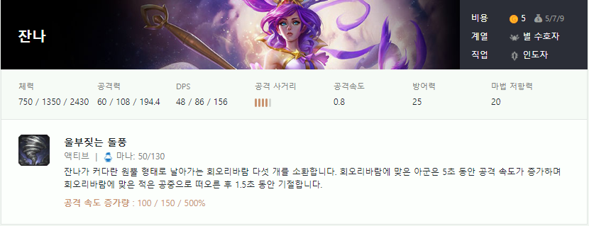 시너지 : 아군 별 수호자의 기본 공격이 입히는 피해가 고정피해로 전환됩니다. 다른 아군은 기본 공격이 입히는 피해가 마법 피해로 전환 됩니다.
