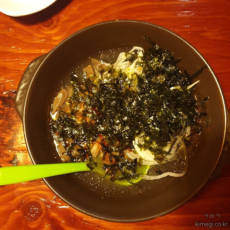 김가루, 김치, 양파가 어우러져서 정말 자극적이고 새콤한 맛이 너무 좋았어요.