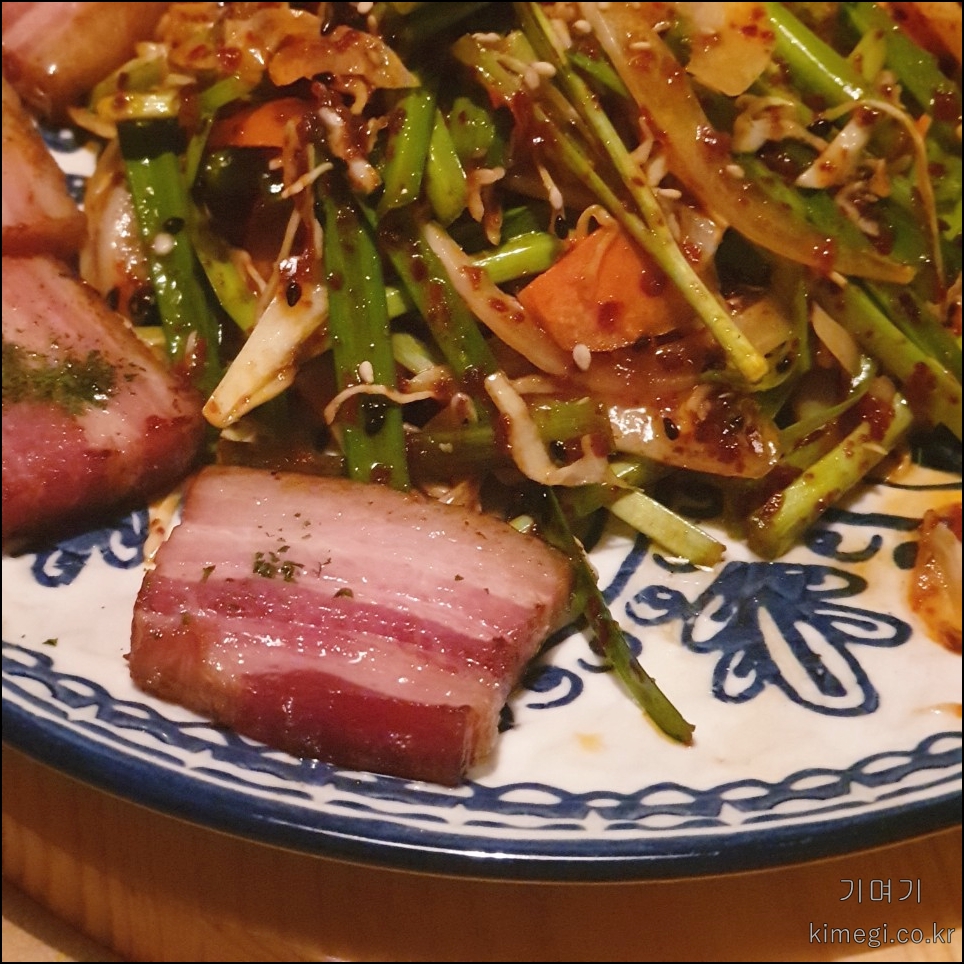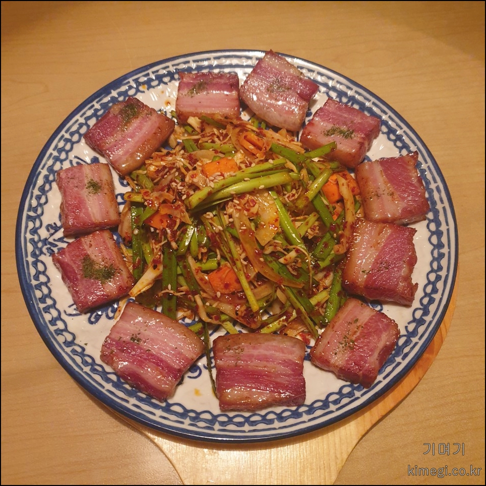 훈제 삼겹살의 훈제향이 배어있으면서 비계의 고소함과 살코기의 짭짤함이 너무 맛있었어요.