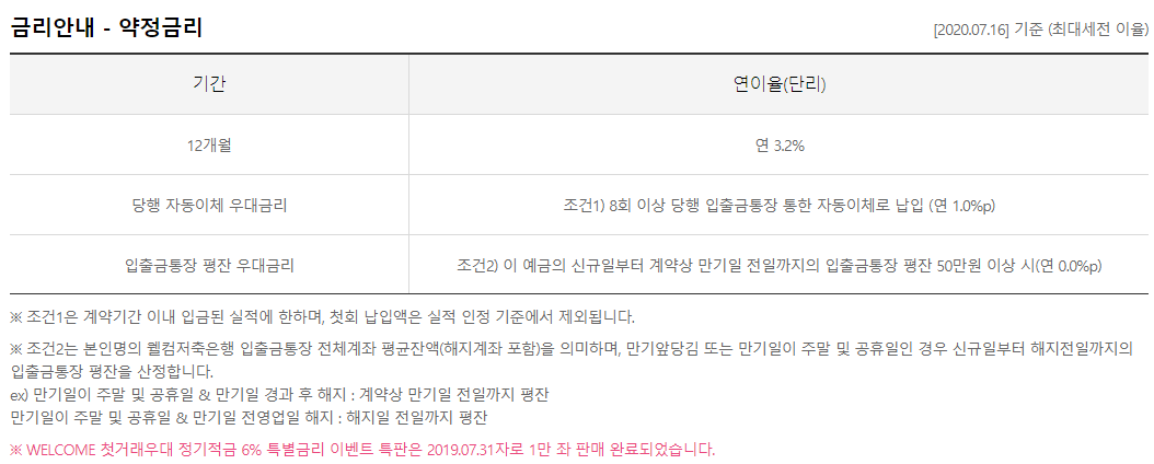 웰컴 저축은행 첫 거래 우대 정기적금 가입 방법!!