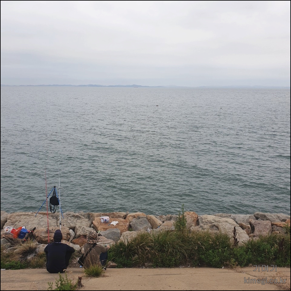 방조제를 지나가는데 너무 낚시하기 좋게 되어 있더라고요.
