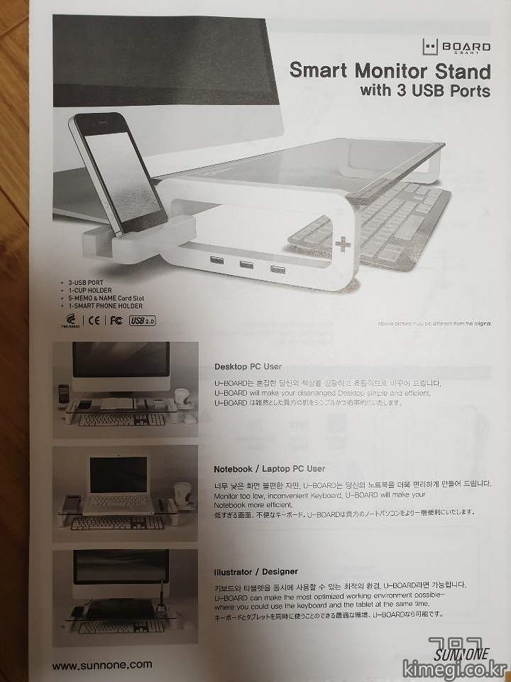 (썬엔원) U-BOARD Basic 화이트 모니터 받침대