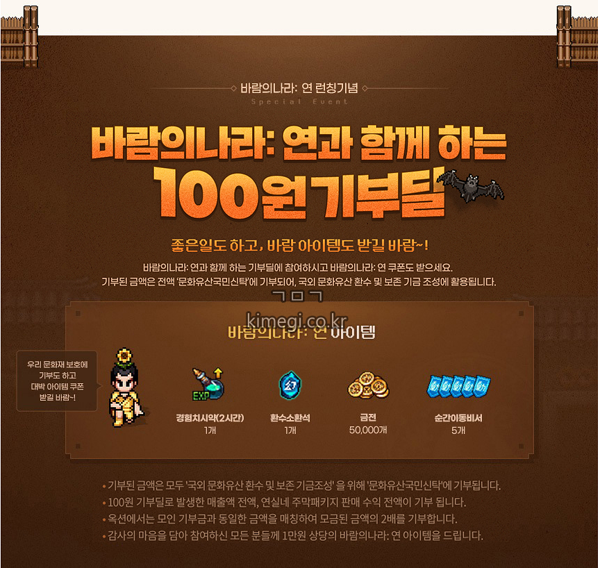 [바람의나라 : 연] 옥션 100원 기부하고 바람 아이템 획득하자