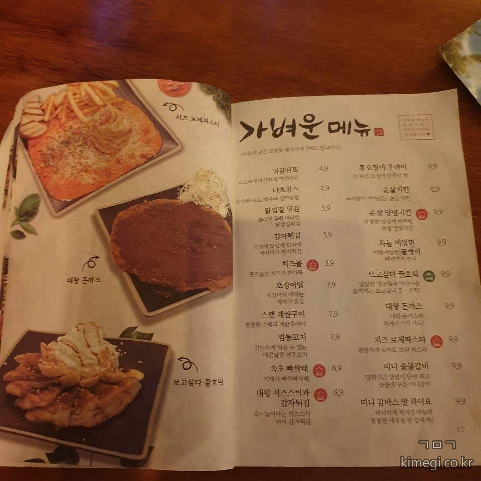 보고 싶다의 또 하나의 특이한 점이 메뉴판 뒤에 낚서가 가능해요.