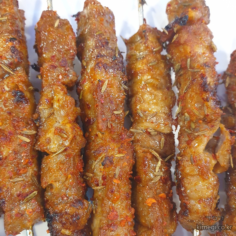 신림역 양꼬치집 만성찬팅에서는 양꼬치가 구워서 나옵니다.