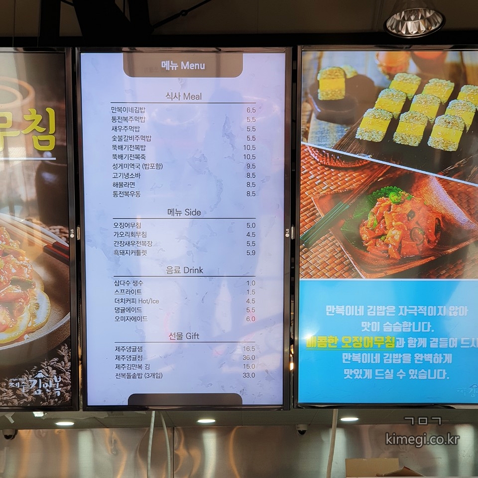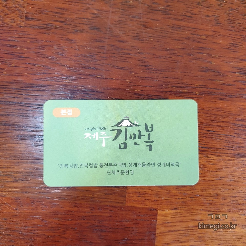 제주시에 위치한 김만복 김밥 본점 메뉴판입니다.
