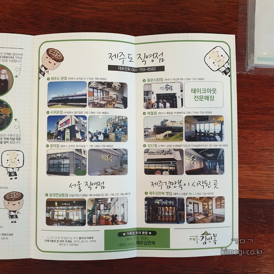 음식을 기다리면서 김만복김밥 팸플릿을 봤어요.