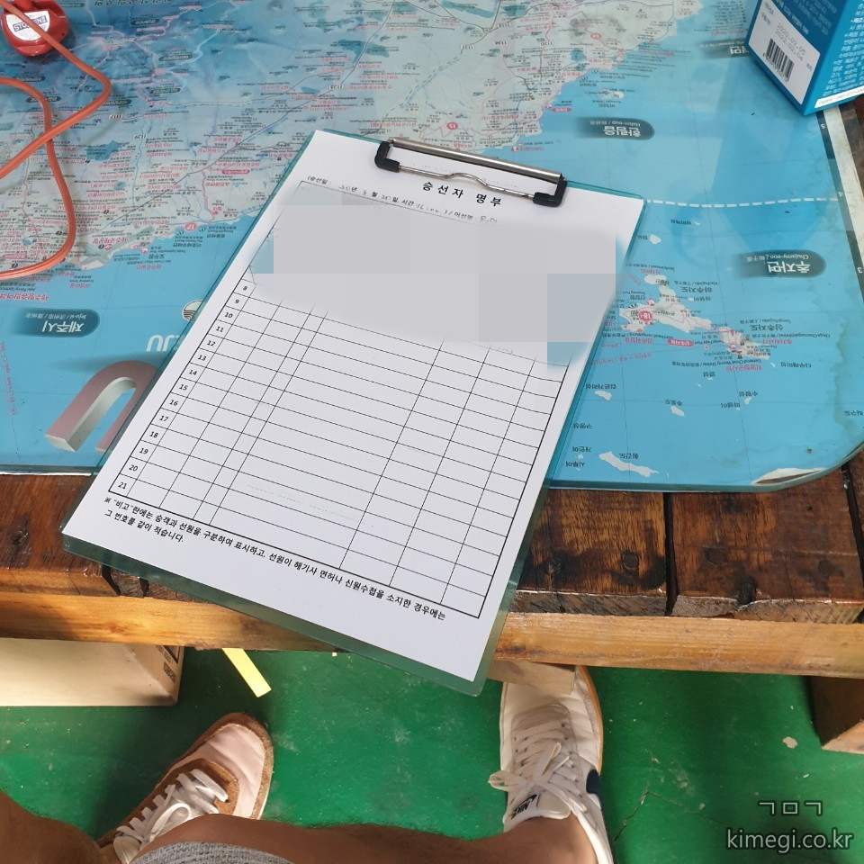 승선자 명부를 작성하고 배를 탔습니다.