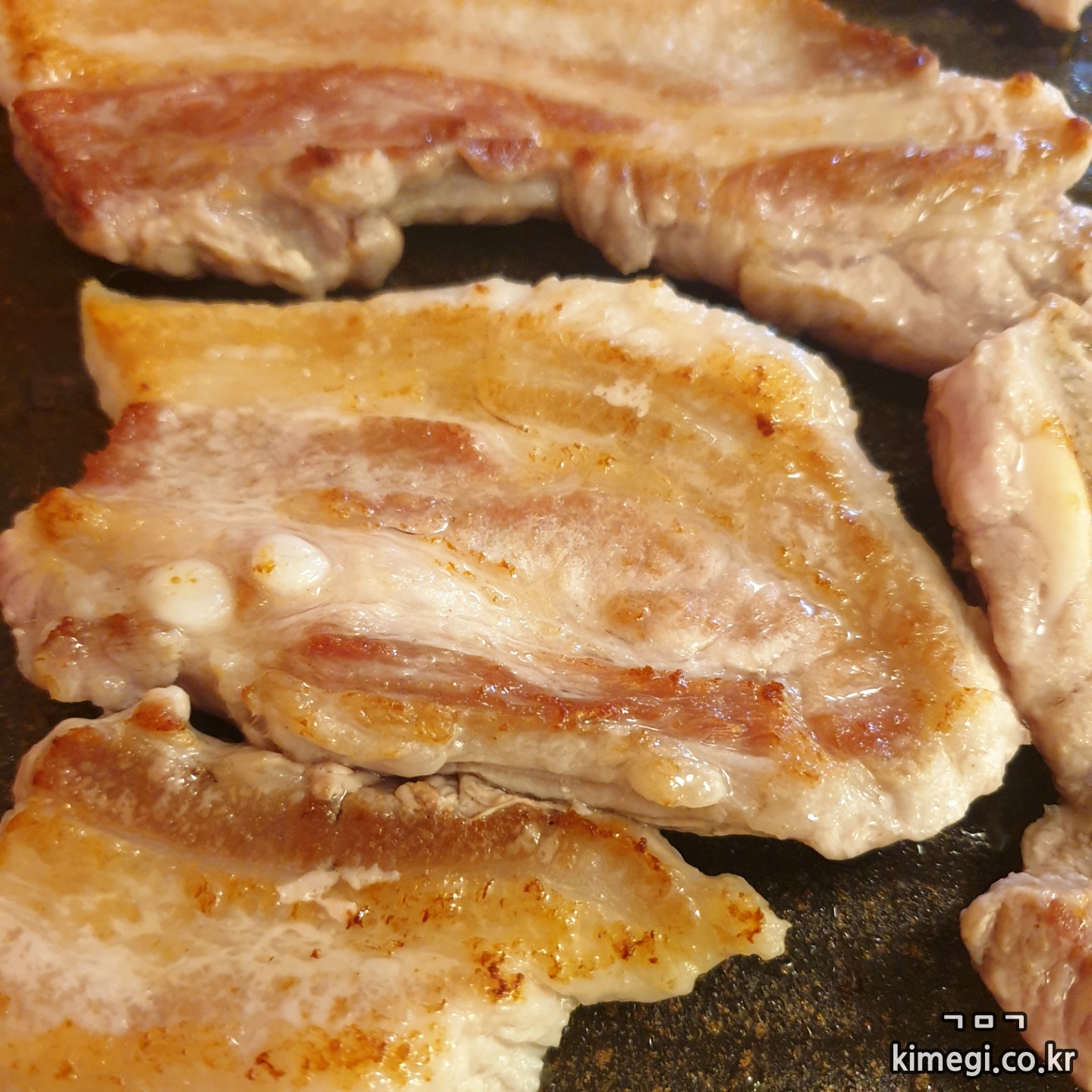 삼겹살은 겉은 바삭 속은 부드럽게 익혀줘야 합니다.