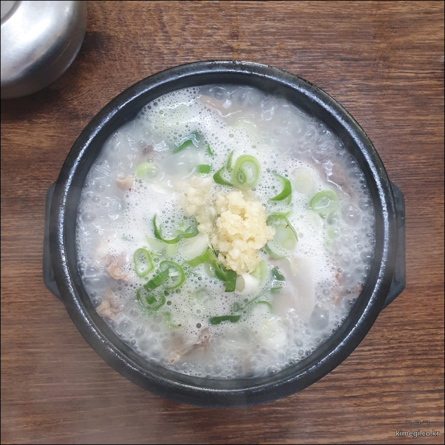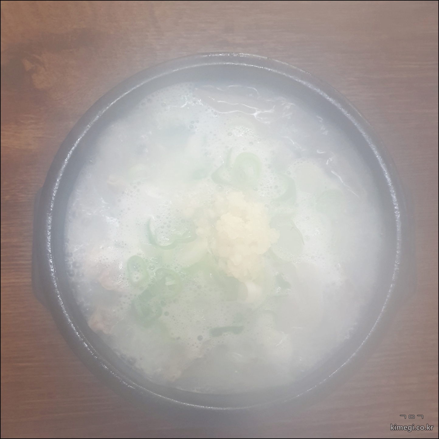 뽀얀 국물에 파와 다진 마늘을 올려져서 나옵니다.