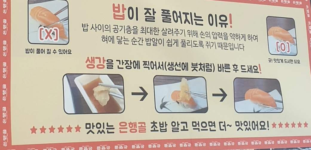 '은행골' 초밥은 이렇게 숟가락에 올려서 생각으로 간장을 발라서 먹어야 합니다.