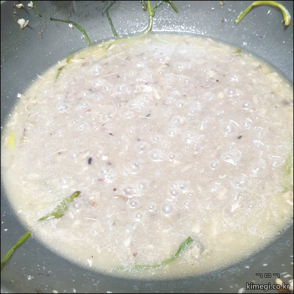 오리와 능이를 다 건져 먹은 뒤에 밥을 넣고 죽으로 마무리를 합니다.
