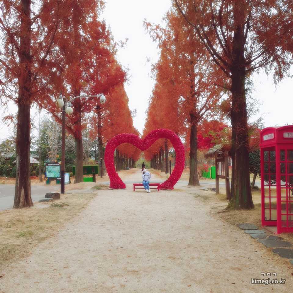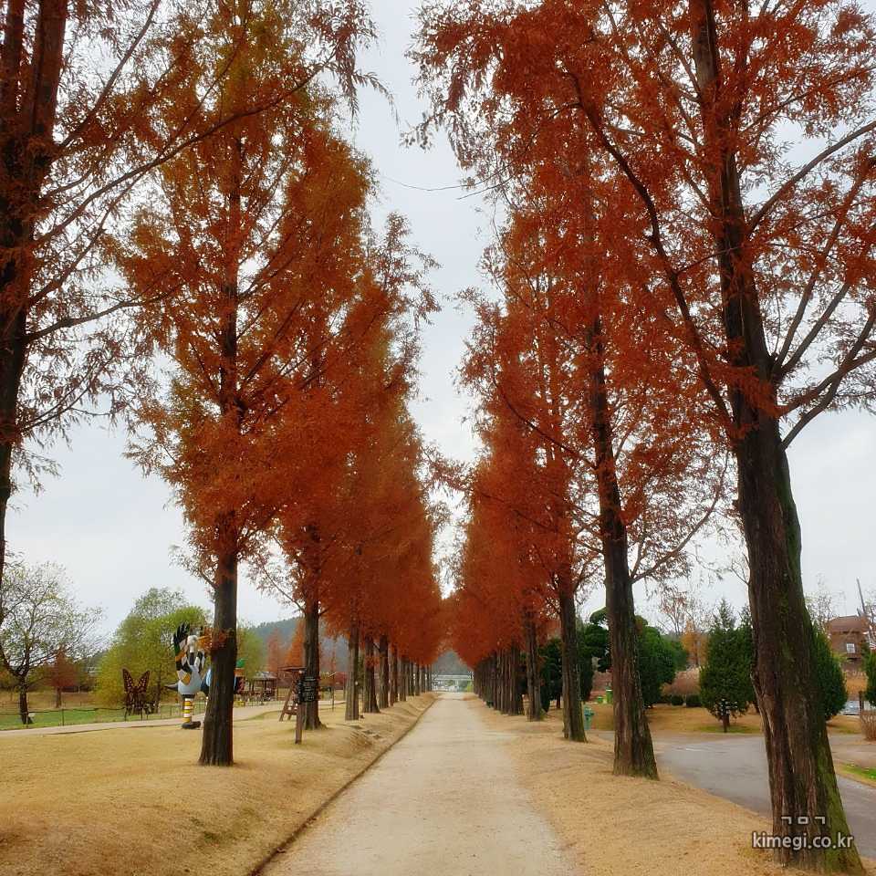 단풍으로 물든 메타세쿼이아 길입니다.